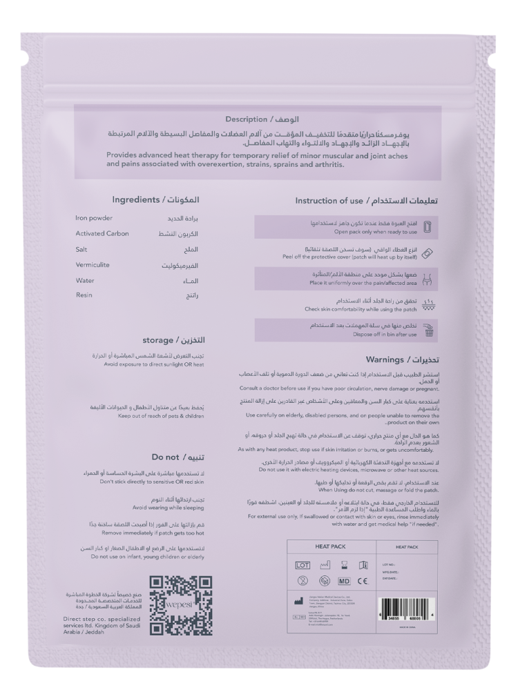 افتح العبوة و الصقها على المنطقة التي تحتاج للراحة